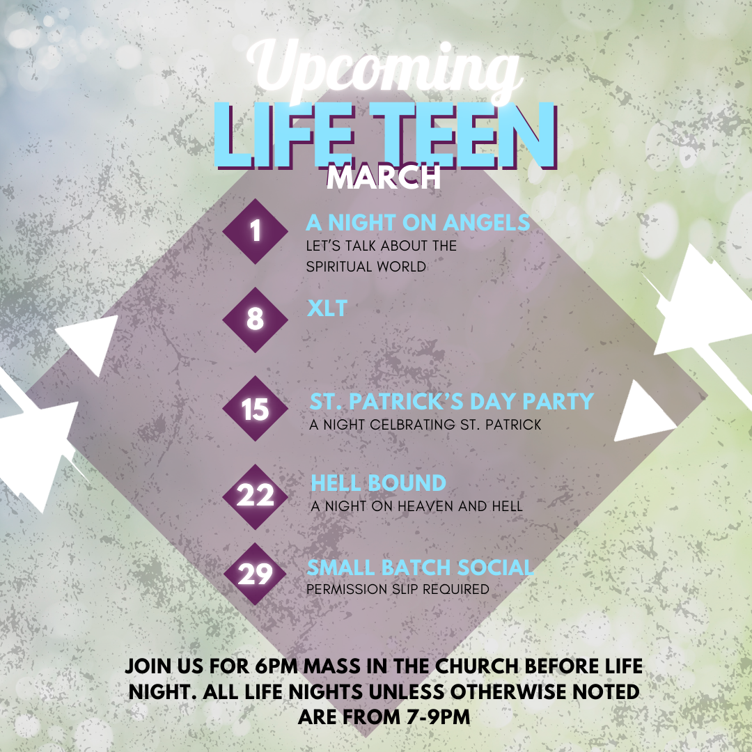 Join us for 6pm Mass prior to Life Night and sit in our teen section!